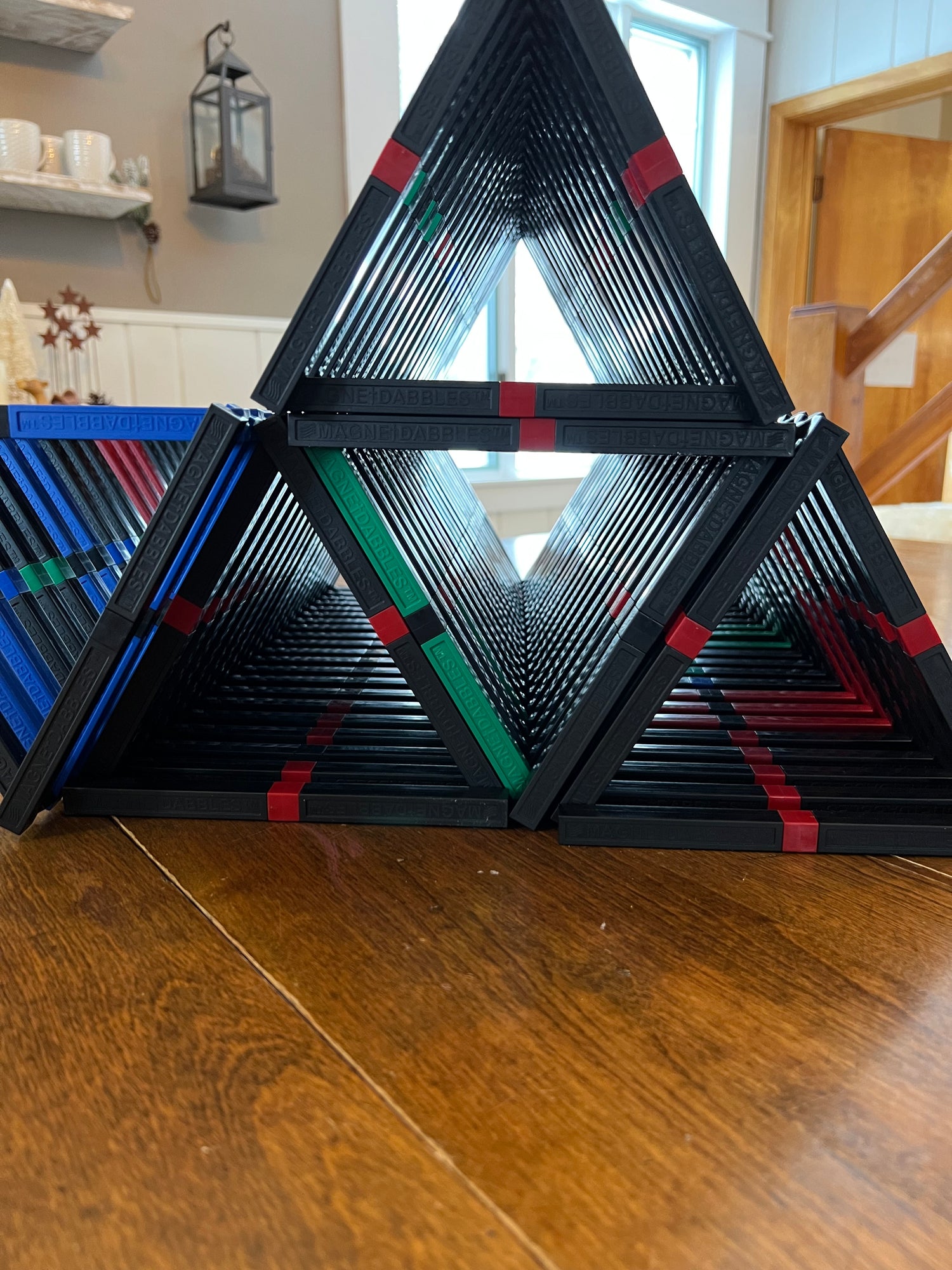 Magnetdabbles are embedded with two super-strong neodymium magnets that allow them to stick to each other and other metallic surfaces.